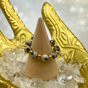 • Bague « Bouclier Or Tacheté » en Jaspe dalmatien – 4mm