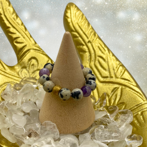 • Bague  » Équilibre Spirituel » en Améthyste & Jaspe Dalmatien – 4mm