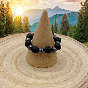 • Bague « Éclats de Feu » en Hématite & Pierre de lave – 4mm