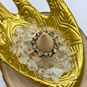 Le jaspe dalmatien agit comme un bouclier énergétique, nous protégeant des influences néfastes et des énergies indésirables. Il procure un sentiment de sécurité émotionnelle en dissipant les peurs et les angoisses, favorisant ainsi la paix intérieure. En stimulant la spontanéité, la joie et la créativité, il encourage un état d’esprit positif et optimiste, et s’avère être un précieux allié lors des périodes de transition ou de changement, nous permettant de rester centrés et confiants face aux défis de la vie.