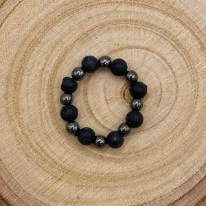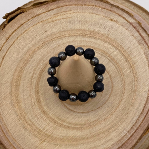 Bague composée d’hématite et de pierre de lave.
