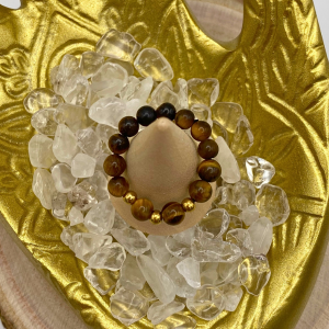 • Matériaux : perles de pierres d’oeil de tigre, perle or en acier inoxydable