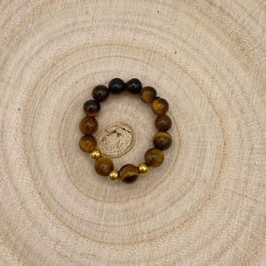 Bague composée d’oeil de tigre, embellit par la couleur dorée de l’acier inoxydable.