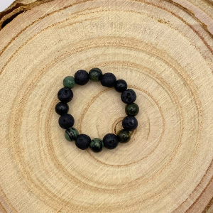 La combinaison du jaspe kambaba et de la pierre de lave offre une synergie équilibrée entre la sagesse ancienne et la force élémentaire. Le jaspe kambaba, avec ses motifs tourbillonnants et ses teintes de vert foncé, incarne la stabilité émotionnelle et la guérison profonde. Il favorise la connexion avec la nature, apporte la tranquillité d’esprit et aide à surmonter les obstacles intérieurs. D’autre part, la pierre de lave, issue des profondeurs de la Terre, symbolise la renaissance et la passion ardente. Elle apporte vitalité et énergie, stimulant la créativité et favorisant le courage. Ensemble, ces deux pierres précieuses forment un duo puissant qui encourage l’enracinement, la croissance personnelle et la transformation. Leur combinaison aide à canaliser les énergies primordiales et à trouver un équilibre entre force intérieure et vitalité extérieure, offrant ainsi un soutien solide pour naviguer à travers les défis de la vie avec détermination et clarté d’esprit.