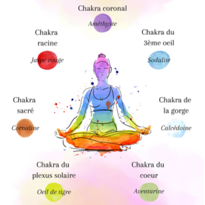Bracelet 7 chakras composé des sept pierres représentant les sept centres d’énergie du corps.