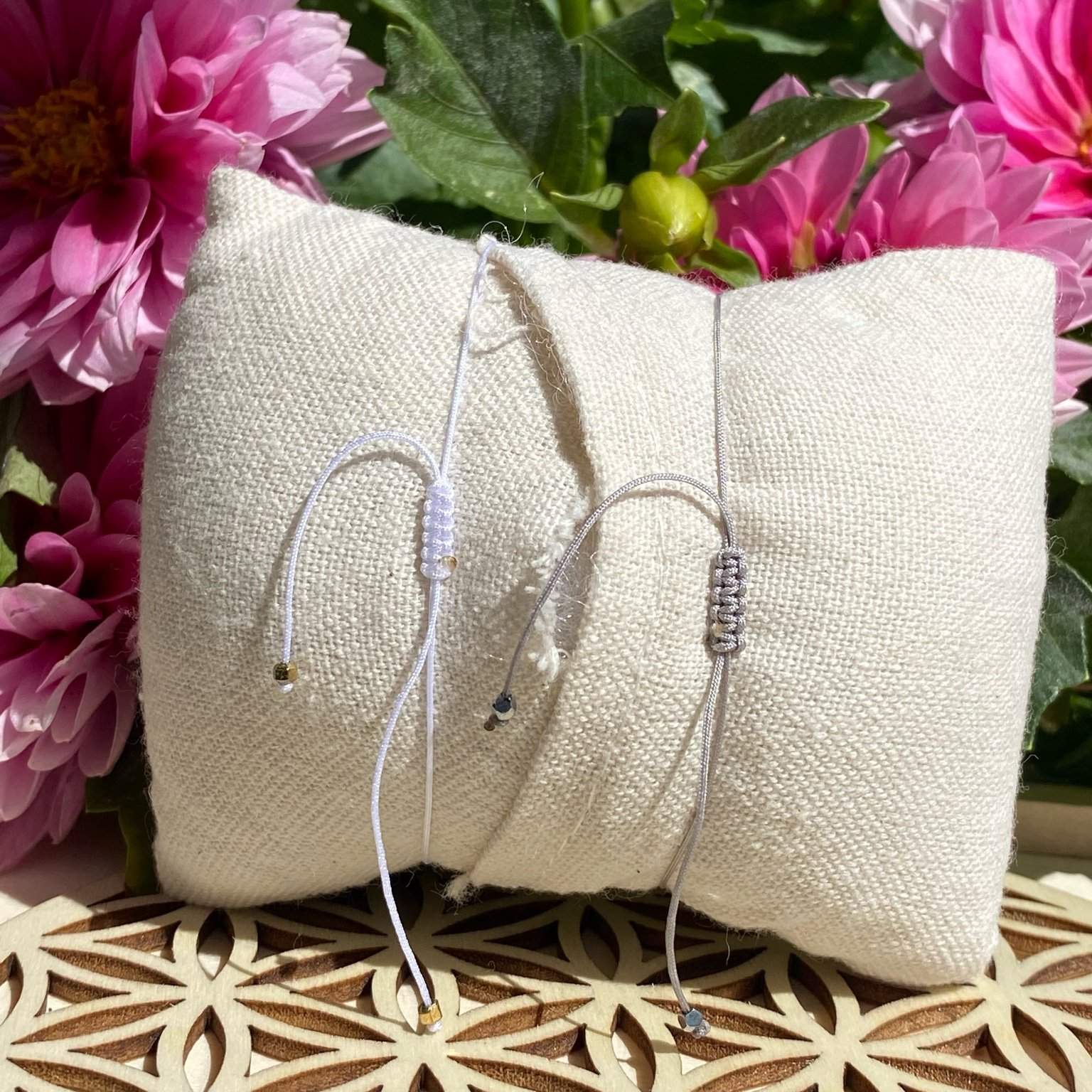 • Type : bracelet réglable sur fil de bleu (nylon) gris, nœud coulissant