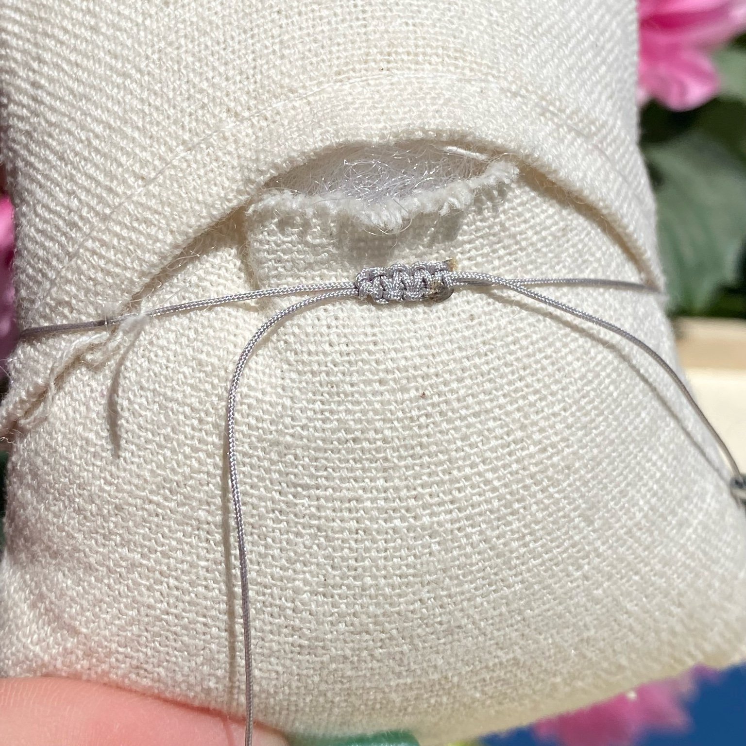 • Type : bracelet réglable sur fil de jade (nylon) gris, nœud coulissant