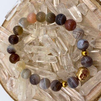 Ce magnifique bracelet est composé de perles d’agate du Botswana, une pierre qui incarne la stabilité émotionnelle, favorise l’harmonie relationnelle et offre une protection énergétique, créant ainsi un environnement propice à la paix intérieure et au bien-être.