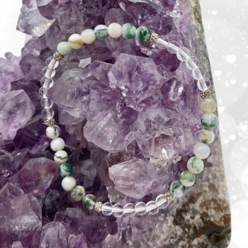 Bracelet « Calmant verdoyant » en Agate mousse & Cristal de Roche – 4 mm