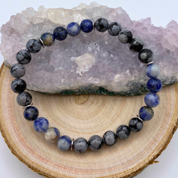 Bracelet « Calme mystique » en Obsidienne flocons de neige & Sodalite – 8 mm