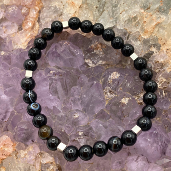 Bracelet « Gardienne Mystérieuse » en Agate Noire – 6 mm