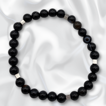 Ce bracelet incarne l’élégance et la puissance discrète. La profondeur mystérieuse de l’agate noire confère à ce bijou une allure sophistiquée et intemporelle, parfait pour compléter tout style avec une touche de mystère.