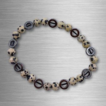 Ce magnifique bracelet est composé de perles d’hématite de jaspe dalmatien, une combinaison de pierres qui allie la force d’ancrage et la protection de l’hématite à la spontanéité et à la joie de vivre du jaspe dalmatien.