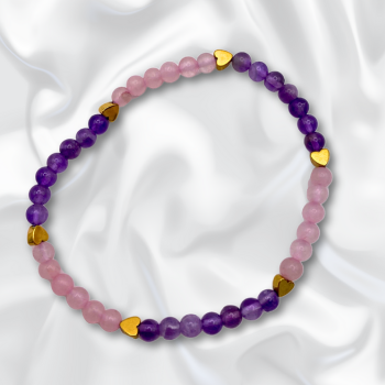 • Matériaux : perles d’améthyste et de quartz rose, perles or en forme de cœur en acier inoxydable