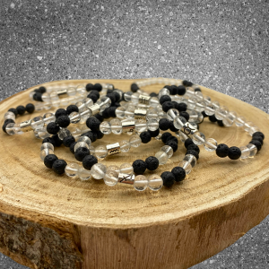 • Matériaux : perles de pierres de cristal de roche et de pierre de lave, perle en acier inoxydable
