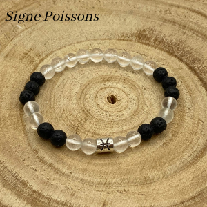 Bracelet signes astrologiques en Cristal de Roche & Pierre de Lave – 6mm – Homme
