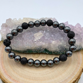 La combinaison de l’hématite et de la pierre de lave offre un équilibre puissant entre la force et la stabilité. L’hématite est réputée pour ses vertus en matière de renforcement de la volonté et de l’énergie, stimulant le courage et la détermination. De son côté, la pierre de lave apporte une énergie terrestre et enracinante, favorisant l’ancrage et la connexion à la Terre. Ensemble, ces deux pierres créent une synergie qui aide à surmonter les obstacles avec résilience tout en apportant une sensation de force intérieure et de stabilité émotionnelle.