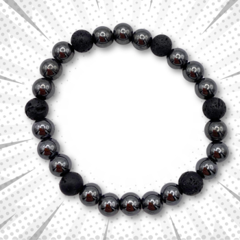 Bracelet composé de pierres d’hématite et de pierre de lave.