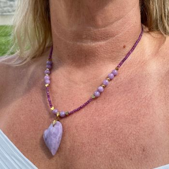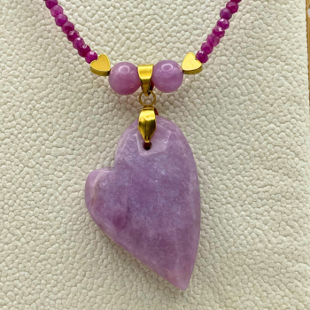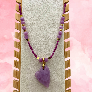 Collier « Le coeur a ses raisons… » en Lépidolite & Rubis
