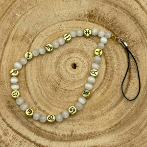 Embellissez tout en sécurisant votre téléphone avec cette dragonne élégante et fonctionnelle aux couleurs nacrées imitées de la sélénite présentant les 12 signes astrologiques.