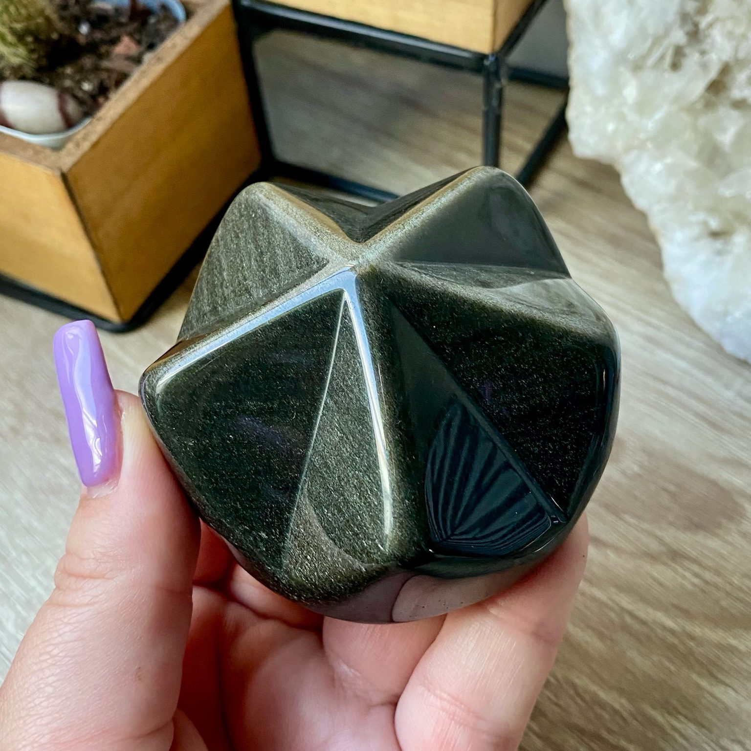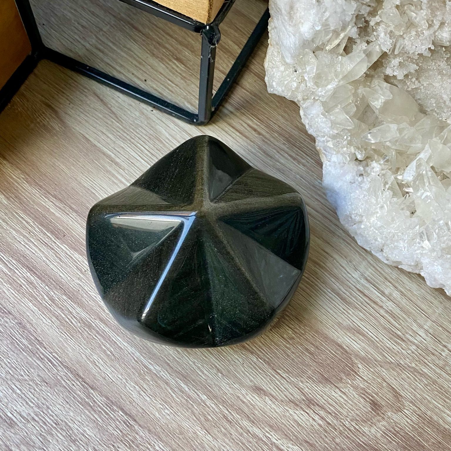Cette magnifique étoile sculptée dans une obsidienne dorée, est un symbole puissant de protection, d’ancrage et de vérité intérieure.