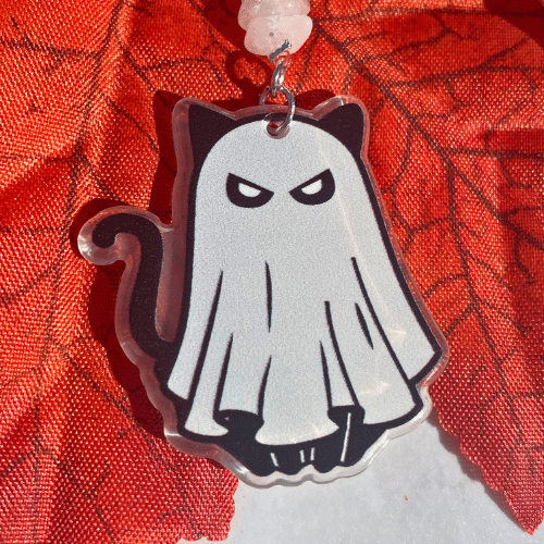 Ce marque-page en quartz blanc, orné d’un chat farceur en costume de fantôme, ajoutera une touche de malice à tes lectures ! 🐱👻