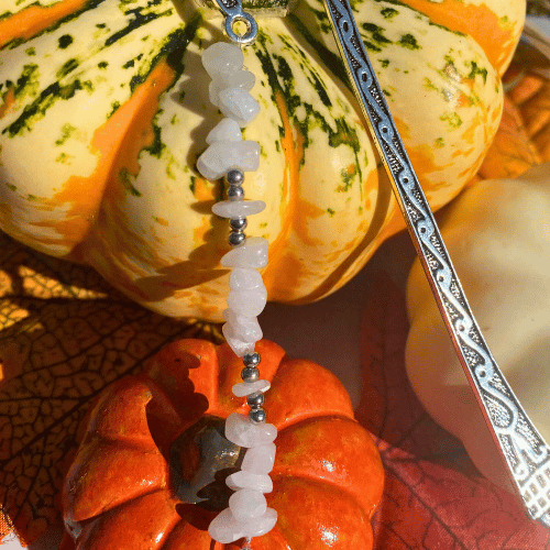 Éveille la magie douce d’Halloween dans tes lectures avec ce marque-page en quartz blanc !