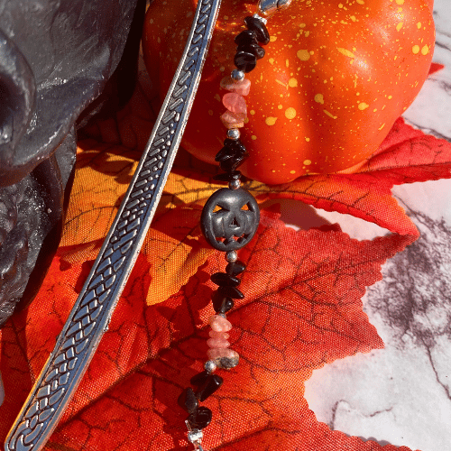 Avec une perle citrouille noire et un pendentif fantôme coquin, cet accessoire est parfait pour ceux qui aiment les histoires d’Halloween aux notes humoristiques.