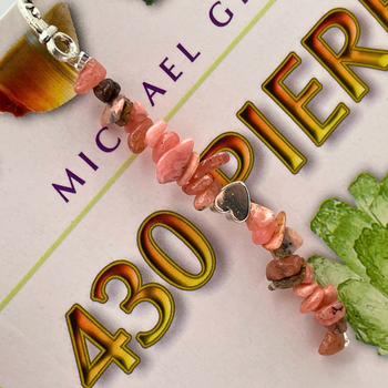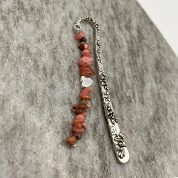 Ce magnifique marque-page présente la beauté des pierres de rhodonite, embellit par un petit cœur argent.