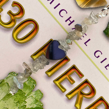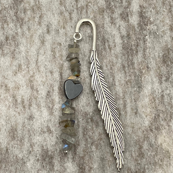 Ce magnifique marque-page allie la beauté de la labradorite et de l’hématite taillée en forme de cœur.