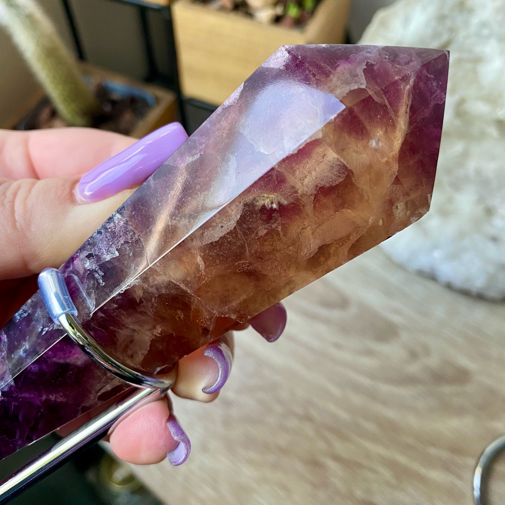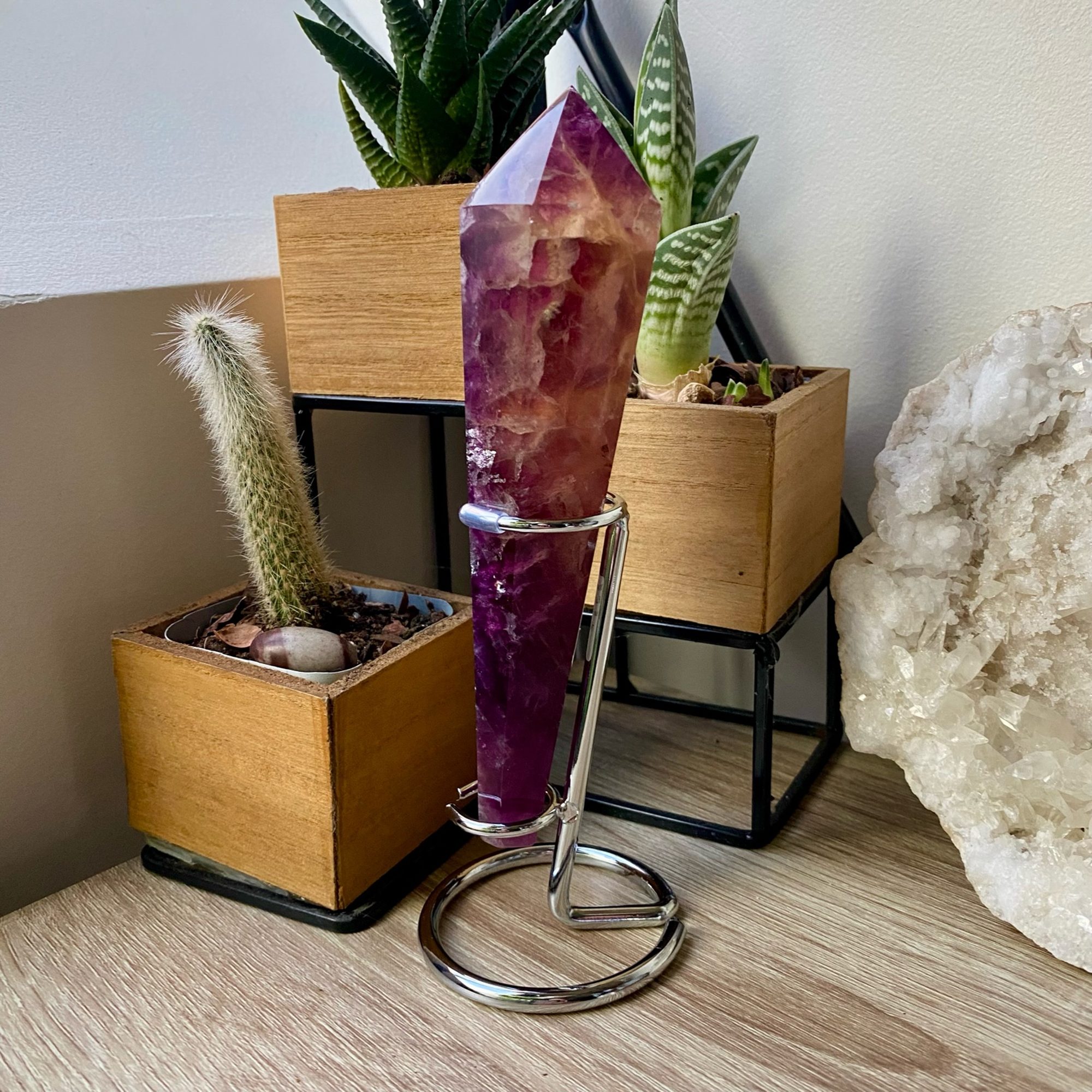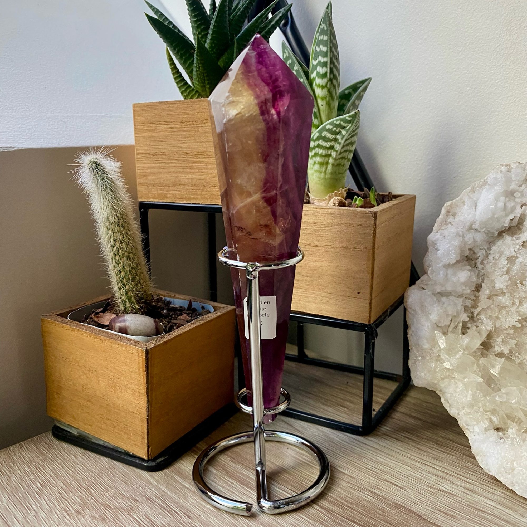 Cette pointe de fluorite sur socle trouve naturellement sa place dans un salon, un bureau ou un espace de méditation. Elle accompagne les moments de recentrage, favorise une ambiance harmonieuse et soutient le bien-être global du lieu, jour après jour.