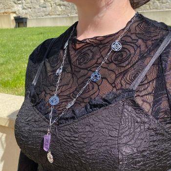 Au centre de ce sautoir, vous trouverez un magnifique pendentif en améthyste taillé en pointe. Connu depuis des siècles pour ses propriétés apaisantes et purifiantes, l’améthyste est une pierre semi-précieuse associée à la spiritualité et à la clarté d’esprit. Elle favorise la méditation, aide à calmer le stress et éveille la conscience spirituelle.