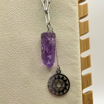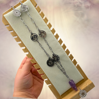 • Matériaux : sautoir et breloque chakras argent en acier inoxydable, pendentif en améthyste