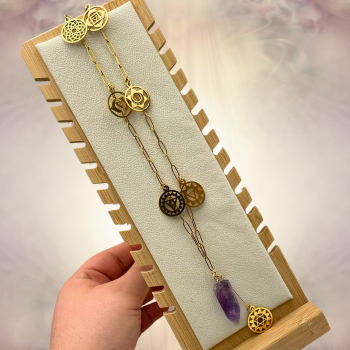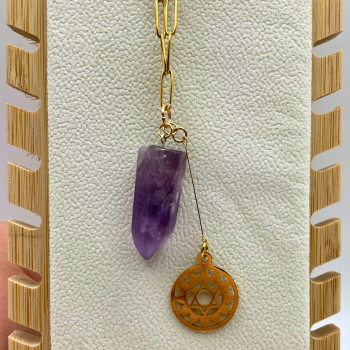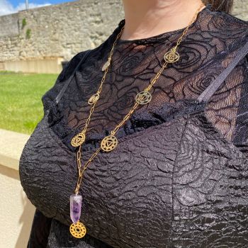 • Matériaux : sautoir et breloque chakras or en acier inoxydable, pendentif en améthyste