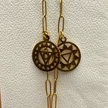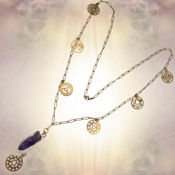 Développez votre harmonie spirituelle avec ce sautoir en maille rectangle allongée de couleur doré, orné de 7 breloques représentant les chakras et d’un pendentif en améthyste.